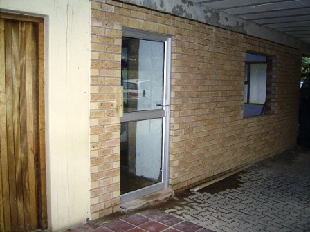 The entrances: New HAART Clinic (right), treatment room (centre), main entrance